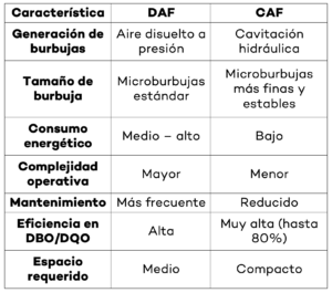 Entre las más utilizadas se encuentran el DAF (Dissolved Air Flotation) y el CAF (Cavity Air Flotation).